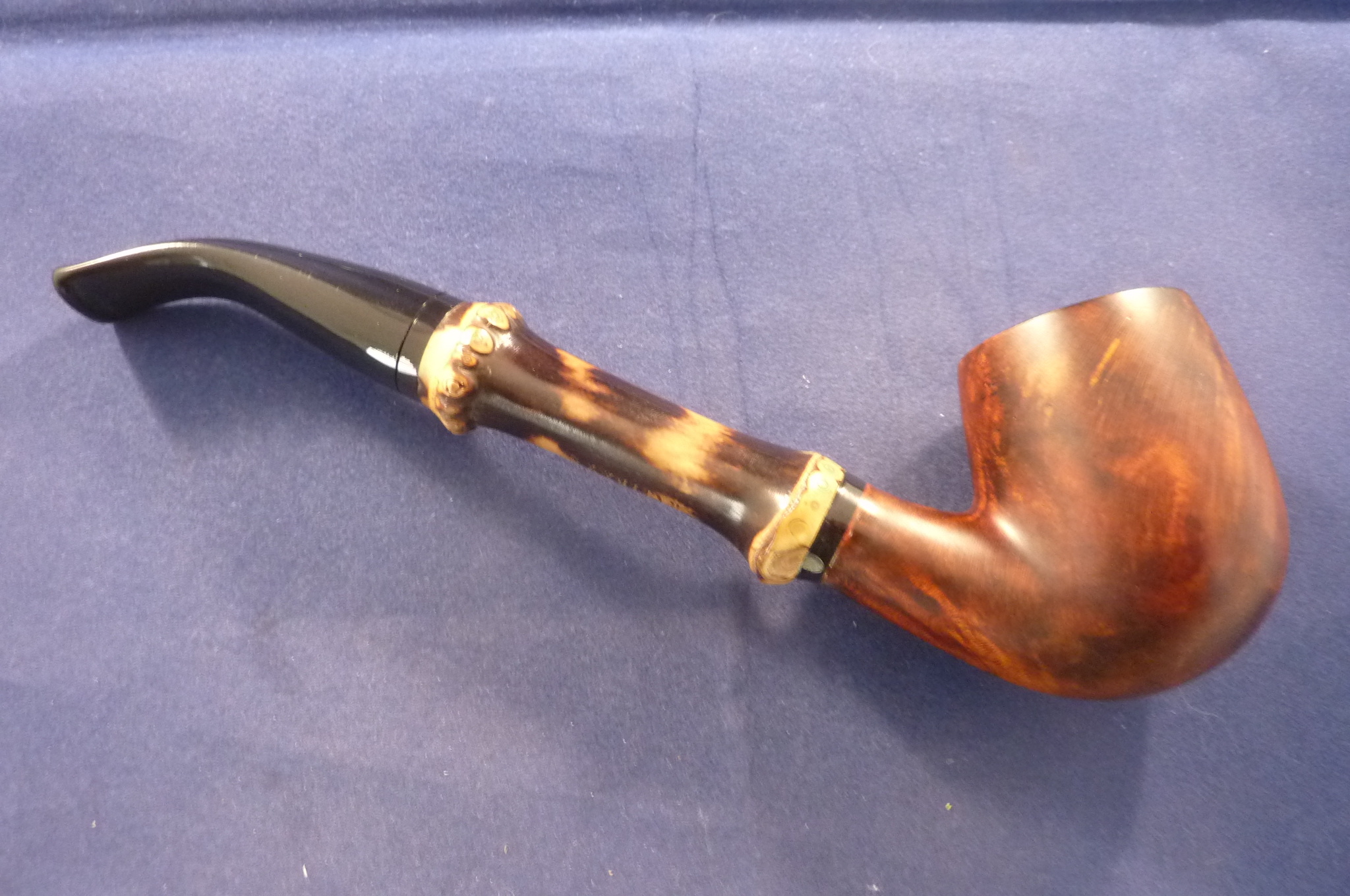 Elegant briar pipe with a bamboo application made for Rattray's. Acrylic mouthpiece, 9 mm. filter.