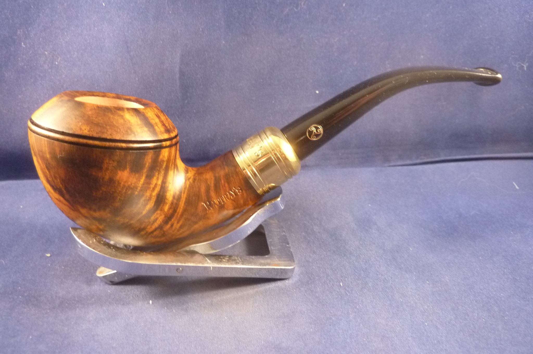 Smooth briar pipe with a brass application made for Rattray's. Black acrylic mouthpiece, 9 mm. filter.
