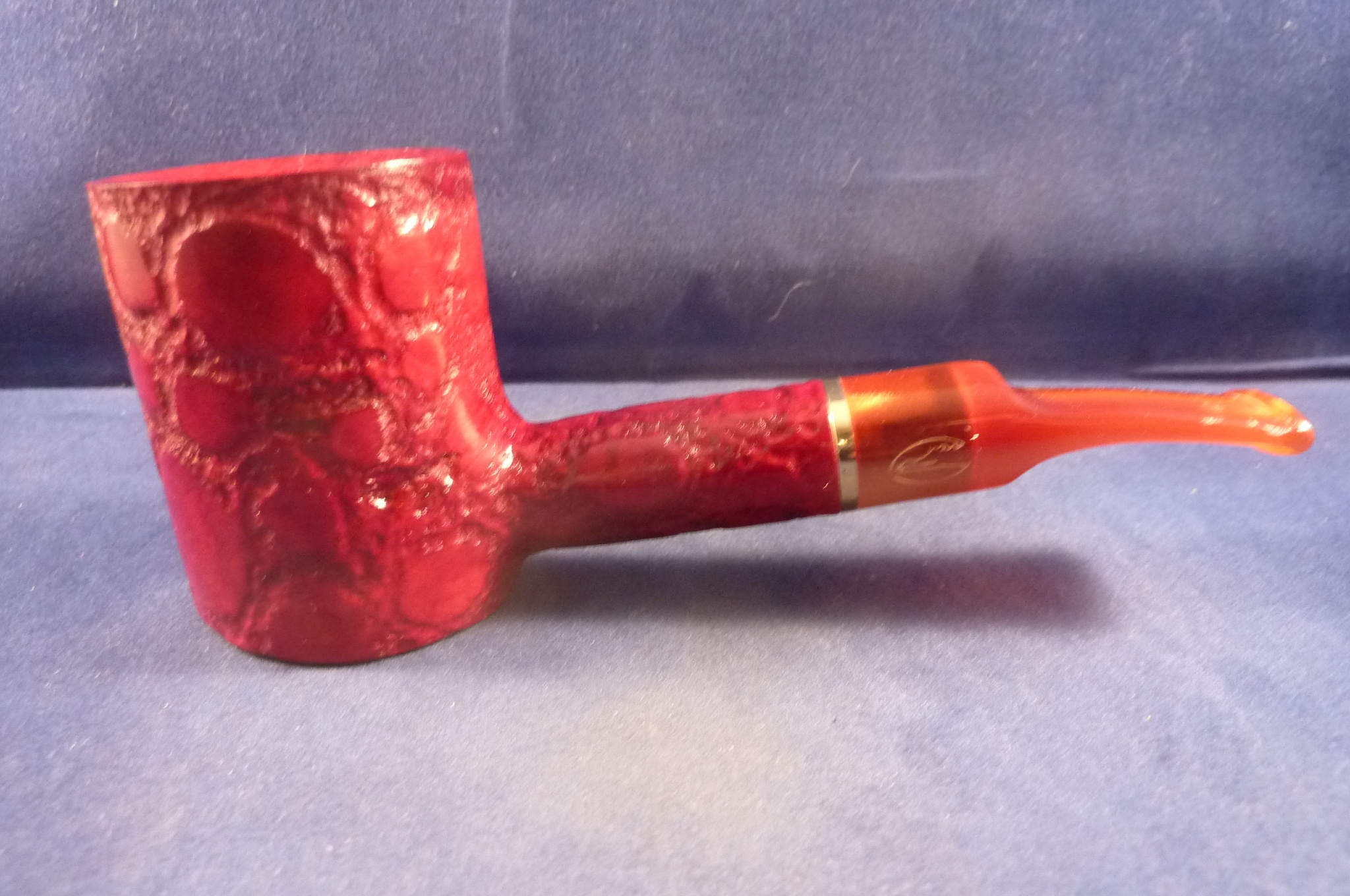 This is a brand new pipe made in Italy. This sandblasted briar pipe has an acrylic mouthpiece, without filter.