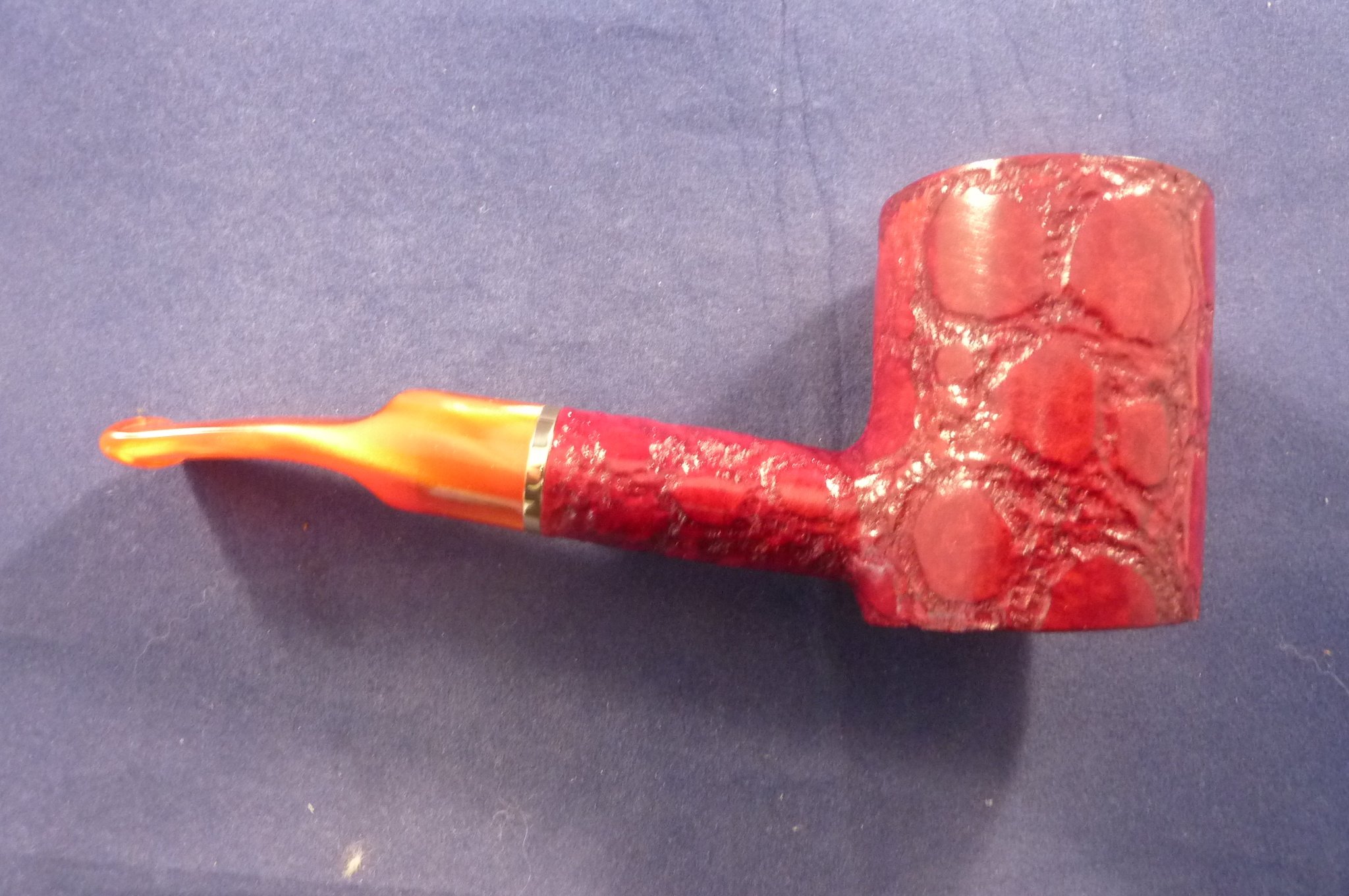 Italian rusticated briar pipe with some smooth parts, that make it look like the skin of a crocodile made by Savinelli.
