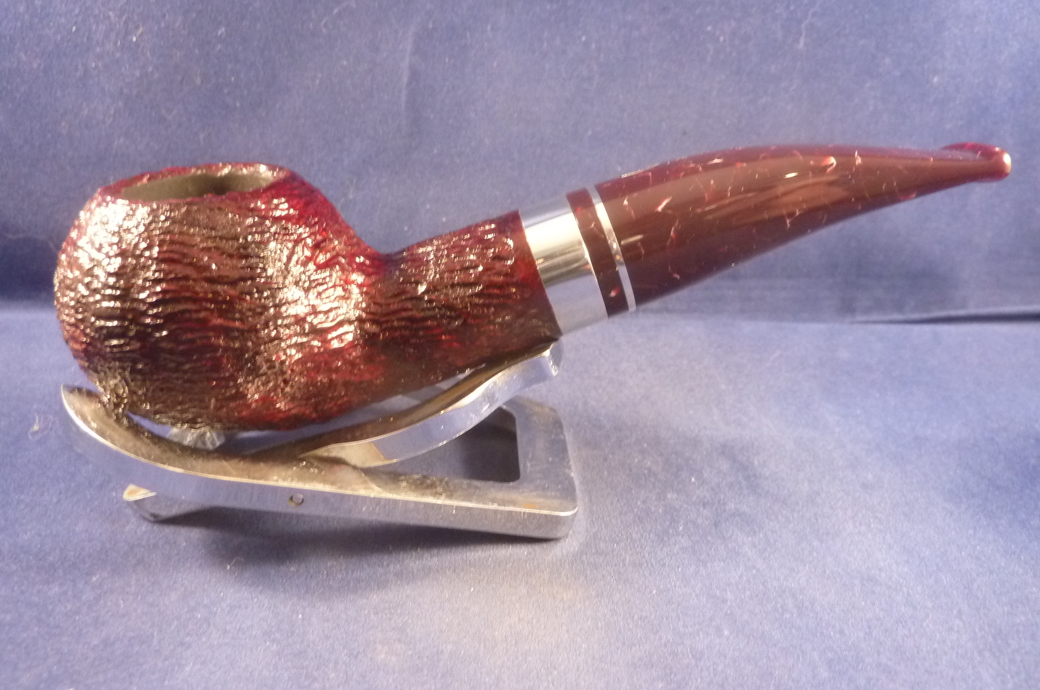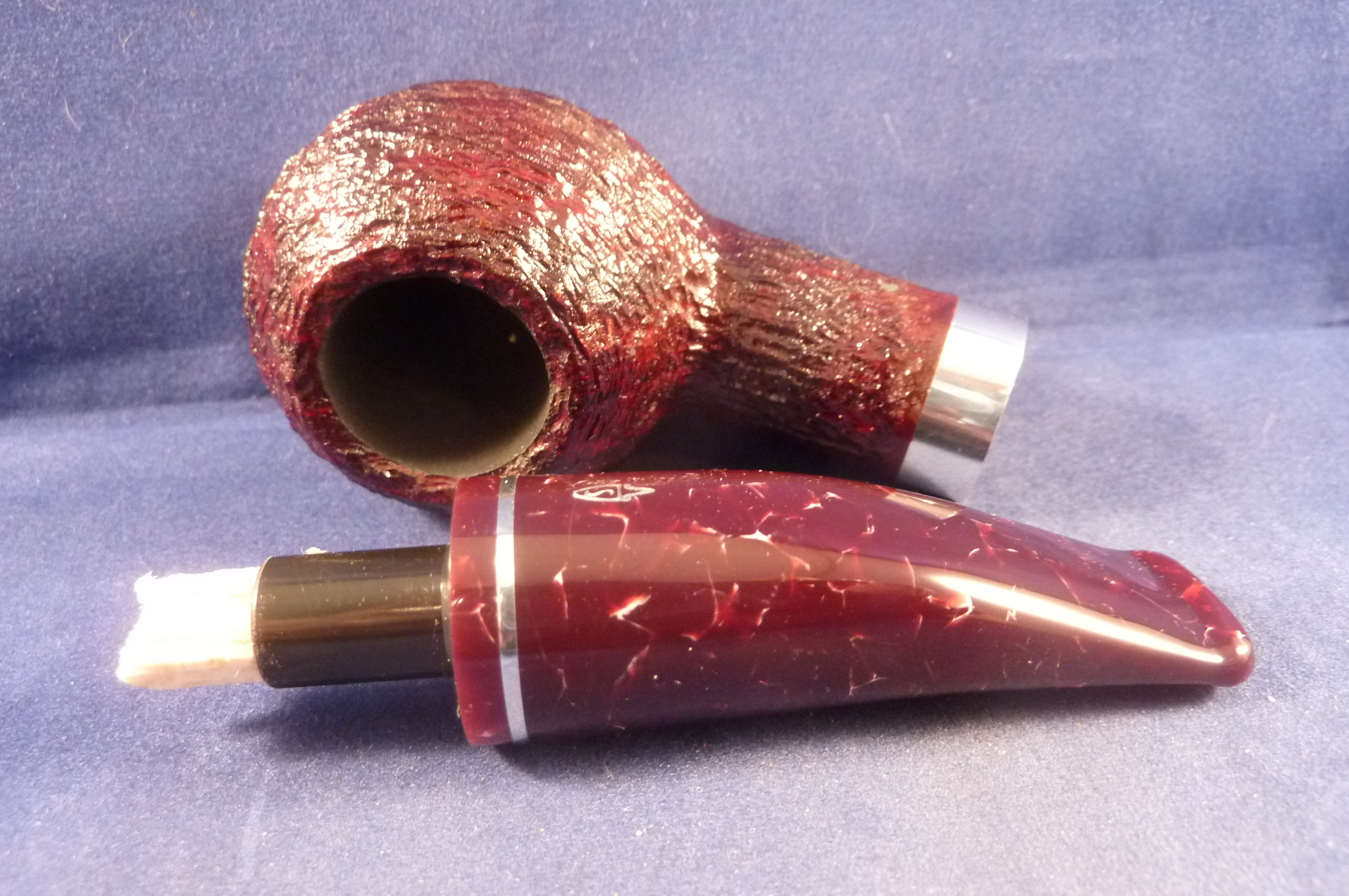Rusticated briar pipe with a metal ring made by Savinelli in Italy. Black acrylic mouthpiece, 9 mm. filters or you can use the famous Balsa system.