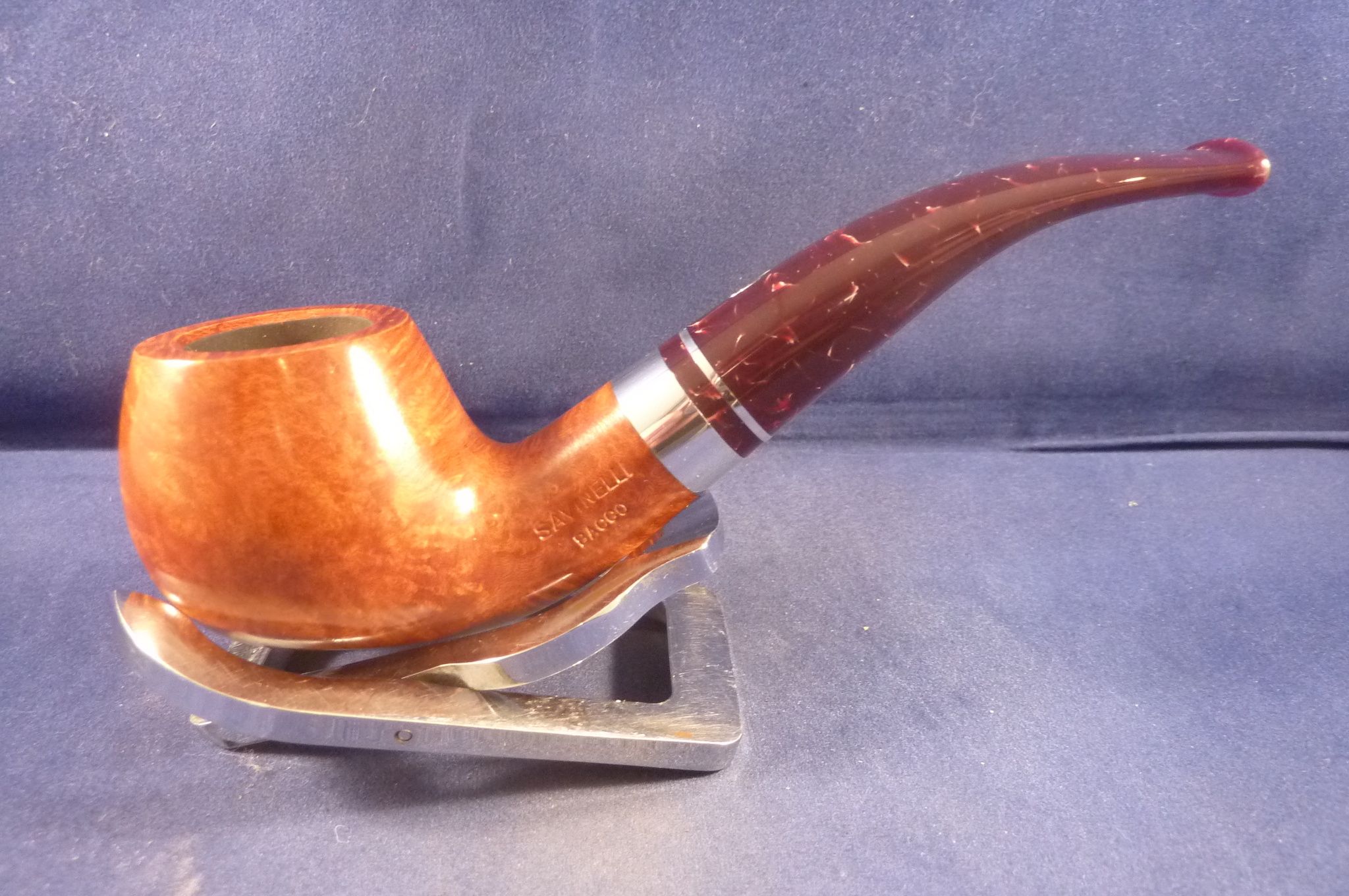 Smooth briar pipe in a natural finish made by Savinelli in Italy. Acrylic mouthpiece, 9 mm. filters or you can use the famous Balsa system.