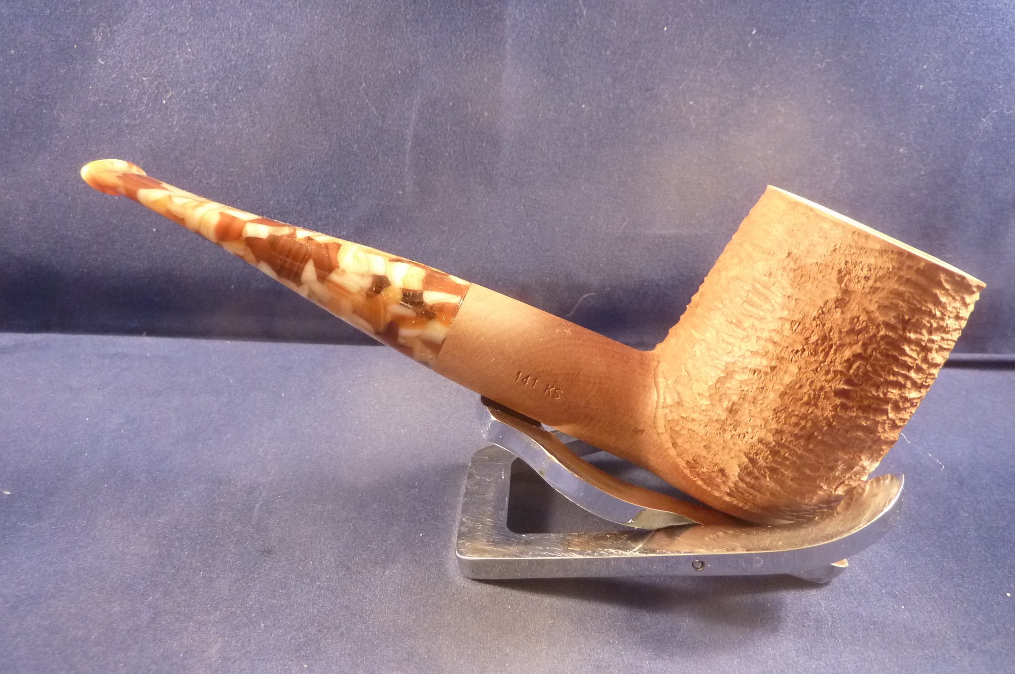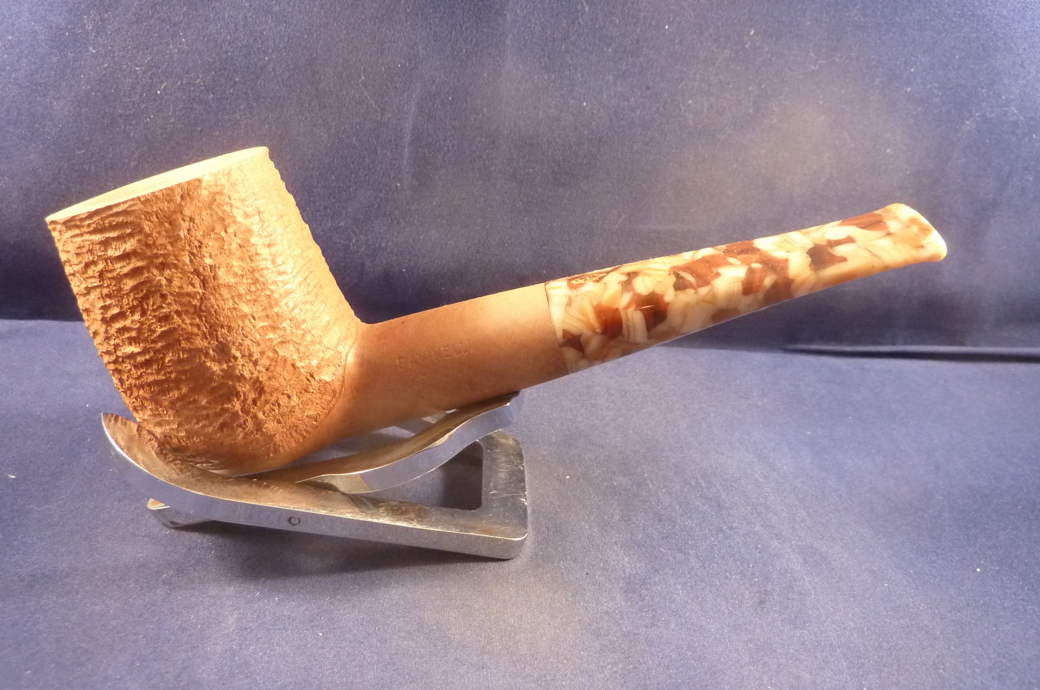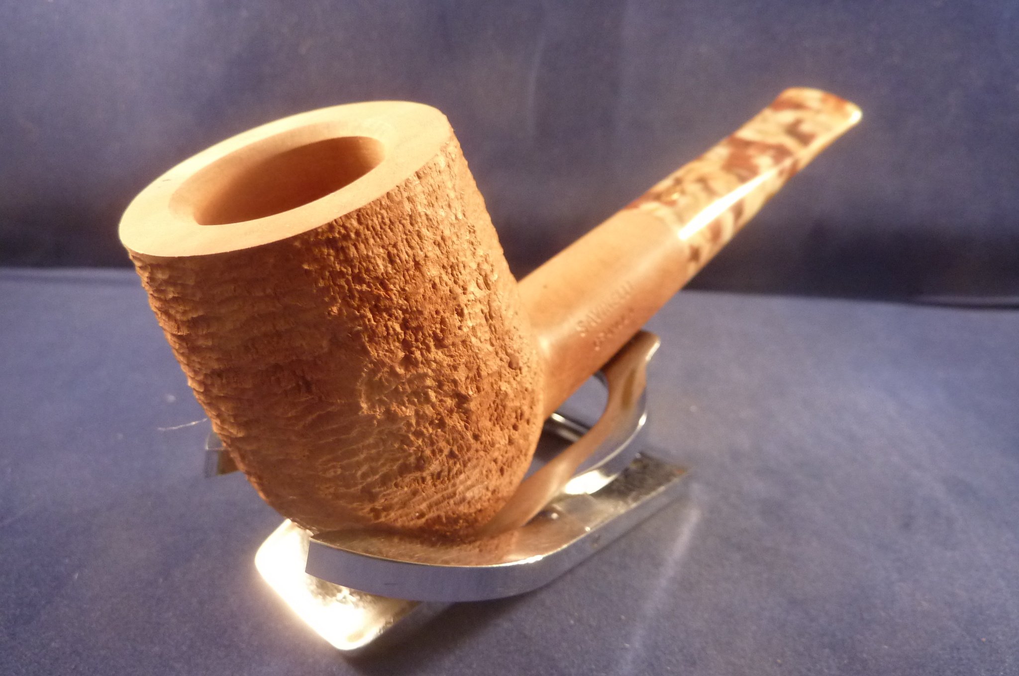 Italian natural rusticated briar pipe made by Savinelli. Coloured acrylic mouthpiece. This pipe is made of high quality briar without any faults. 9 mm. filters or you can use the famous Balsa system.
