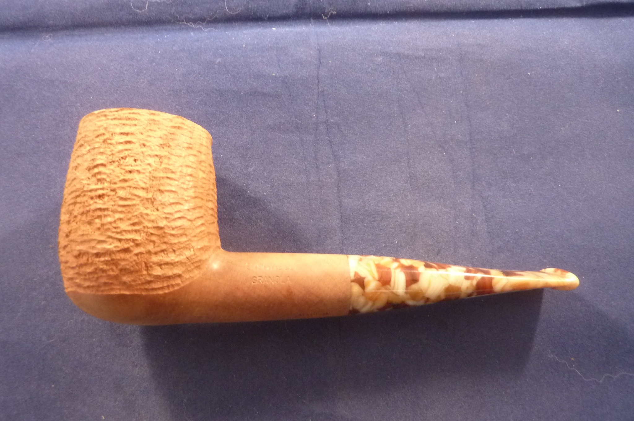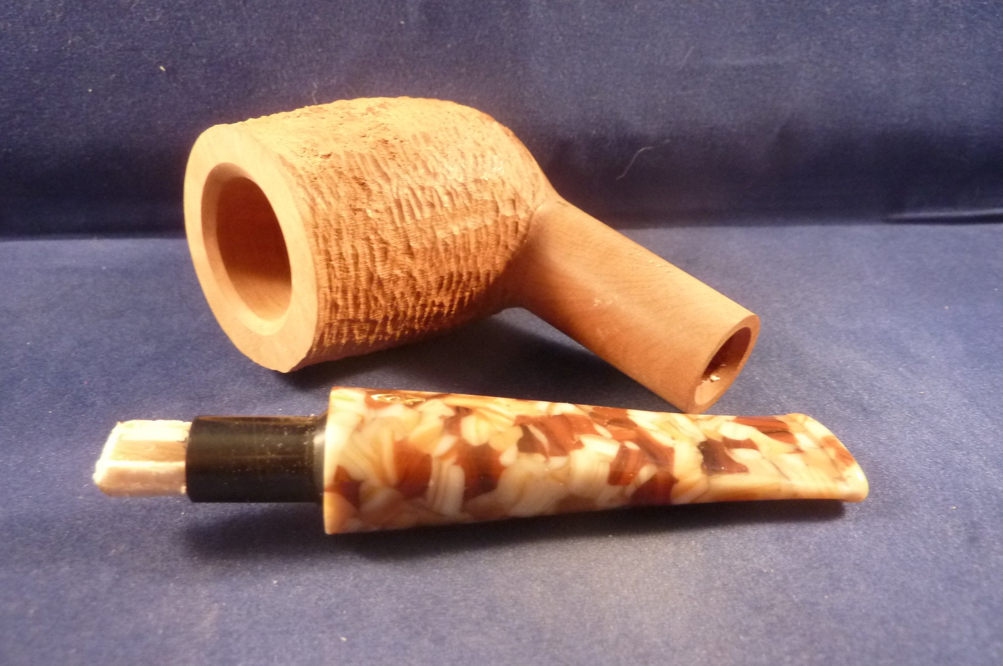 This is a brand new pipe made in Italy. This sandblasted briar pipe has an acrylic mouthpiece, without filter.