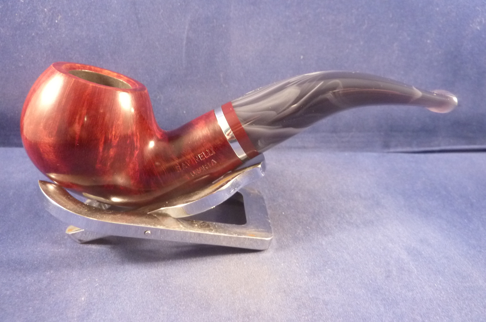 Italian briar pipe in a bordeaux colour made by Savinelli. Acrylic marbled mouthpiece. This pipe is made of high quality briar. 9 mm. filters or you can use the famous Balsa system.