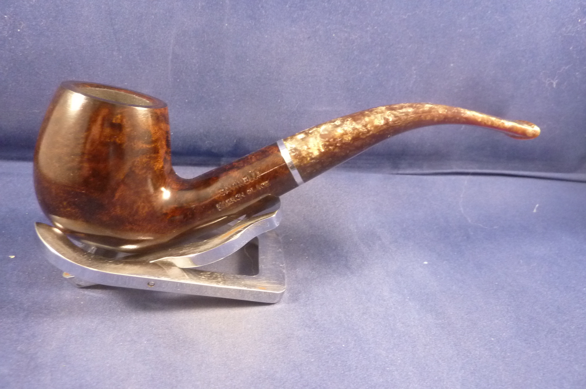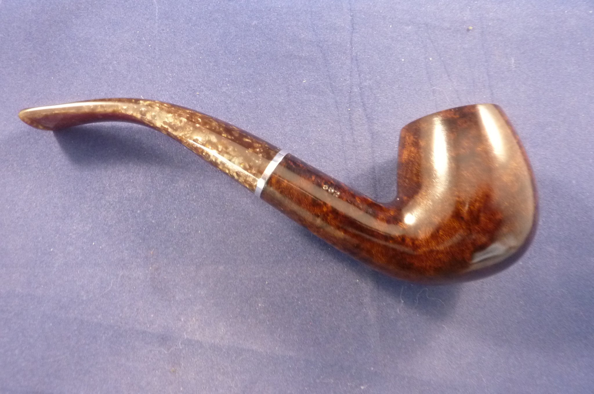 A high quality briar pipe. Specially selected fine quality bowls mounted with a hallmarked nickel band and an army style mouthpiece. P-Lip mouthpiece, without filter.