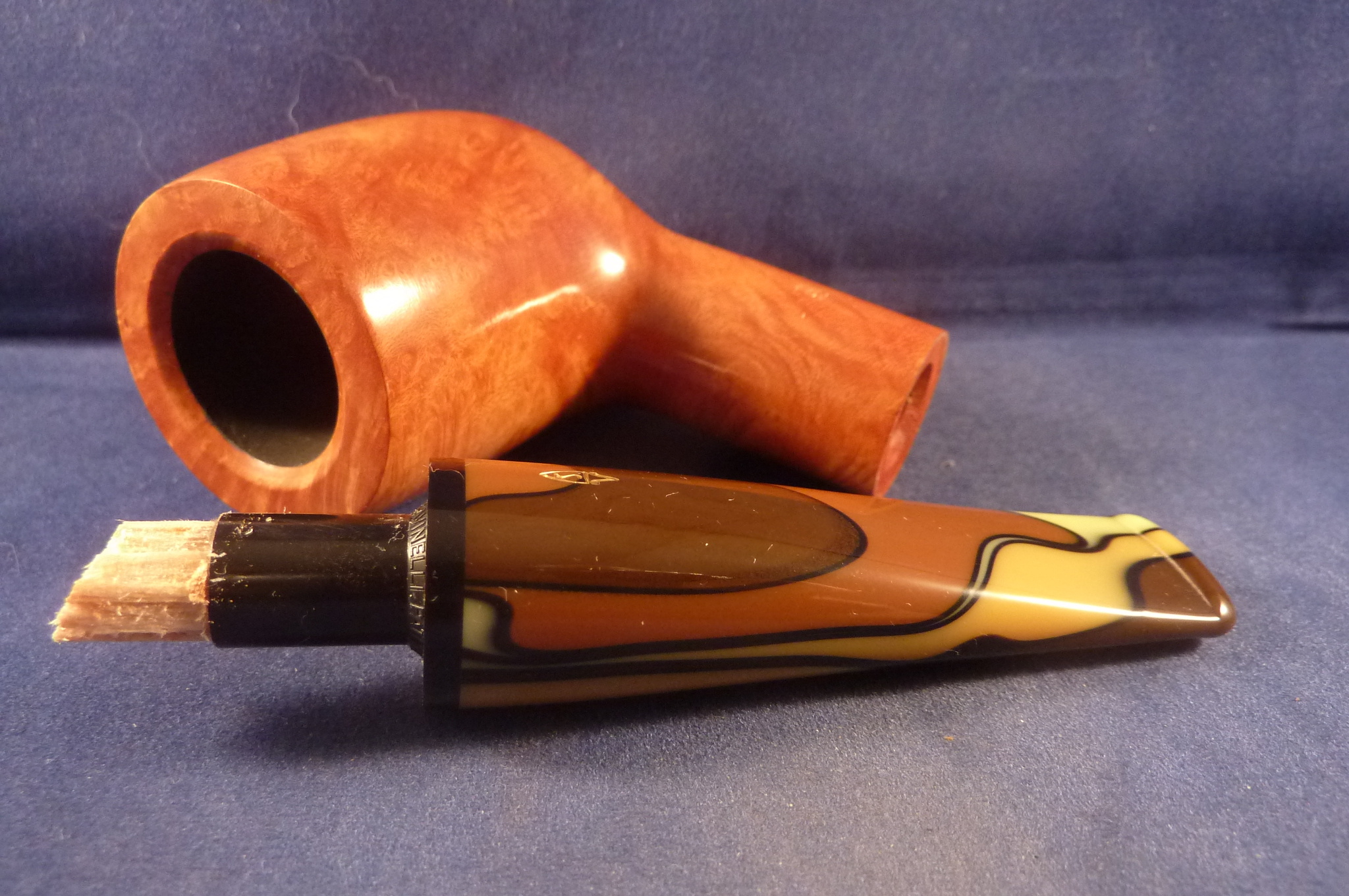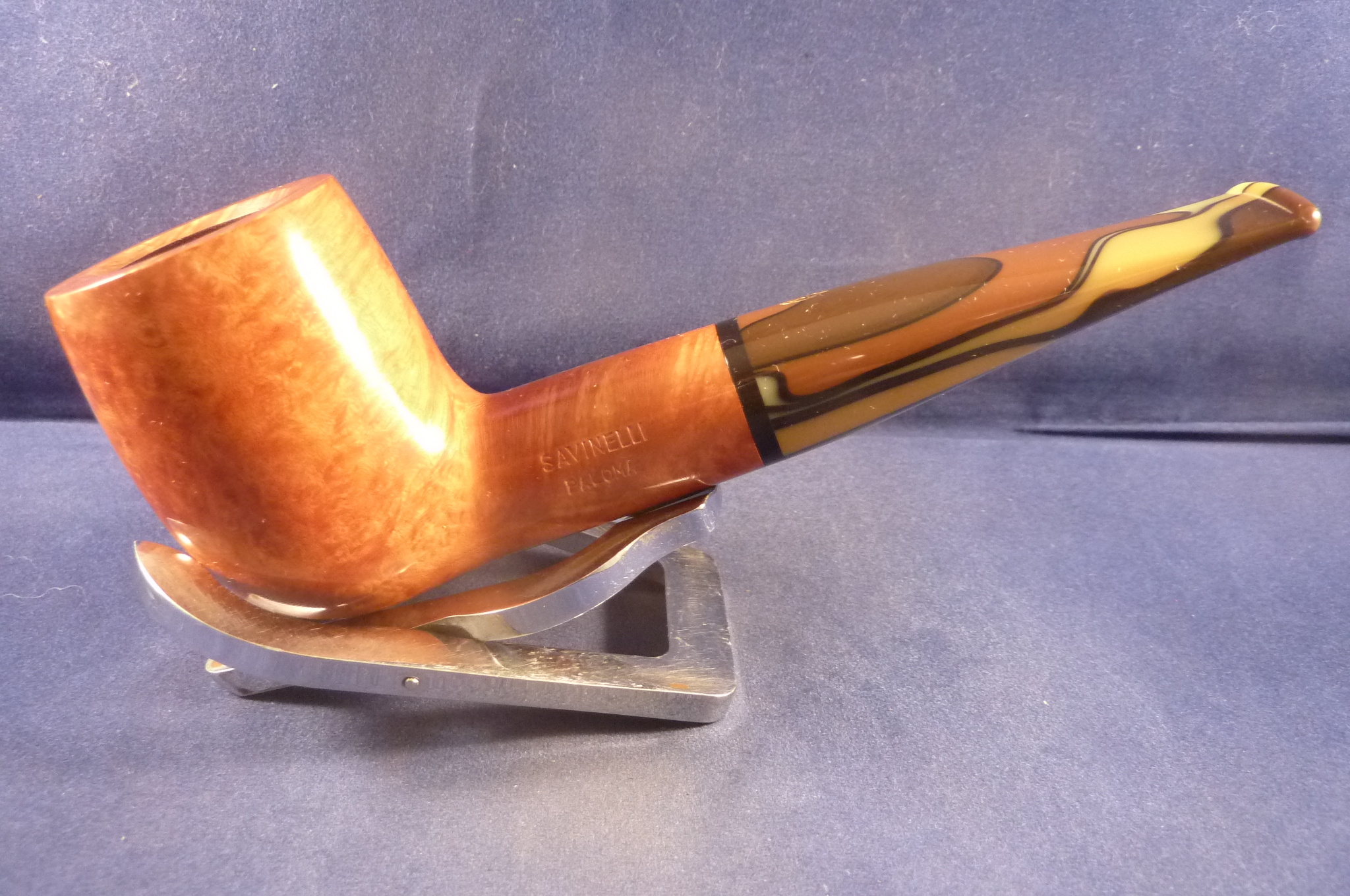 Beautiful briar pipe in a natural finish made by Savinelli in Italy. Acrylic mouthpiece, 9 mm. filters or you can use the famous Balsa system.