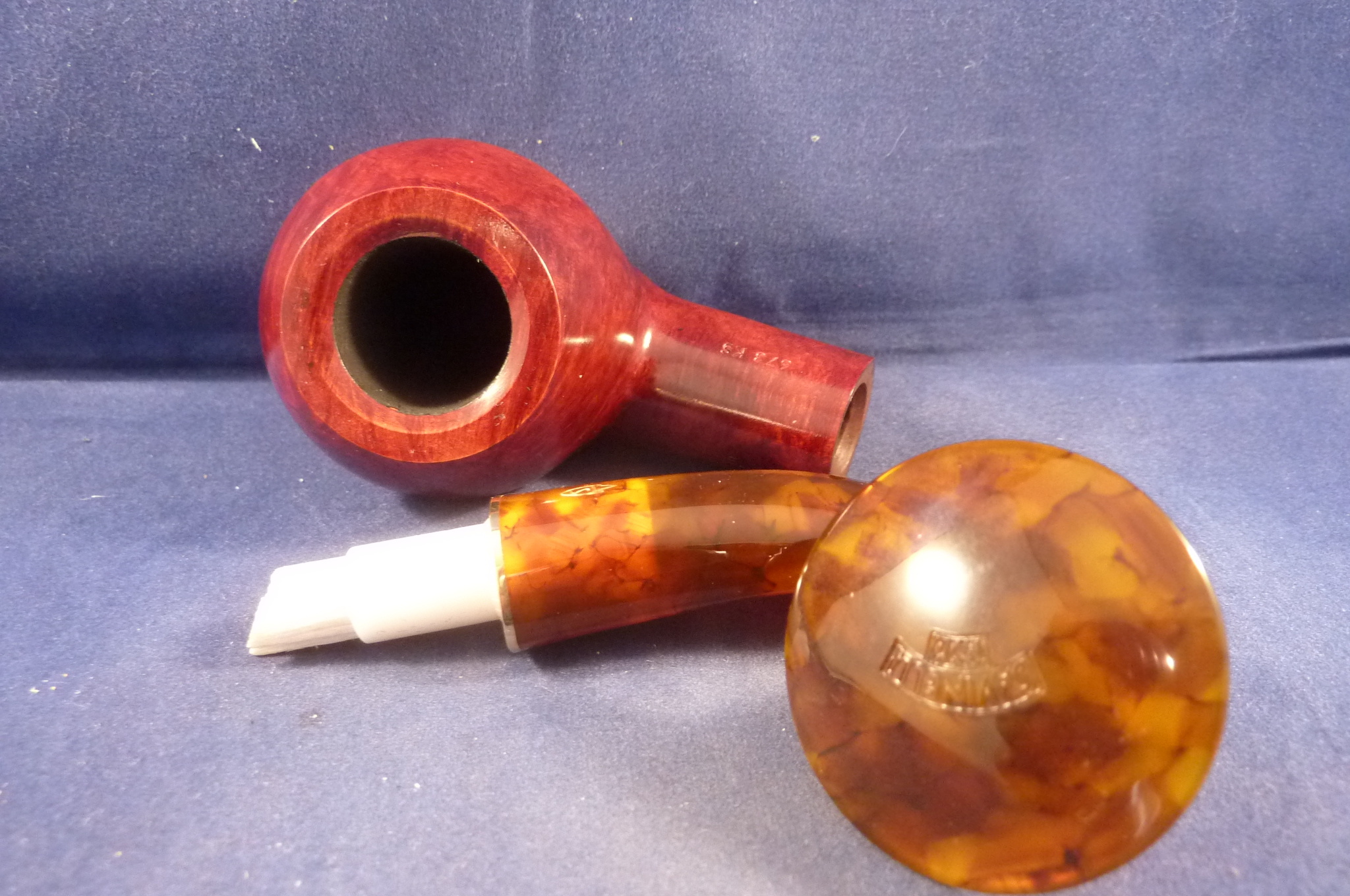 Beautiful briar pipe in a burgundy finish with a cap made by Savinelli in Italy. Acrylic mouthpiece, 9 mm. filters or you can use the famous Balsa system.