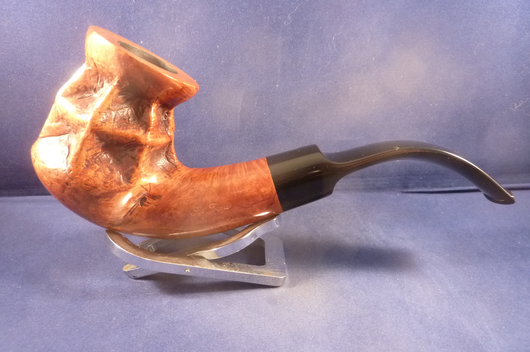 This is a brand new pipe made by Luigi Viprati in Italy. Beautiful hand made sandblasted briar pipe in an elegant shape. Acrylic mouthpiece, 9 mm. filter.