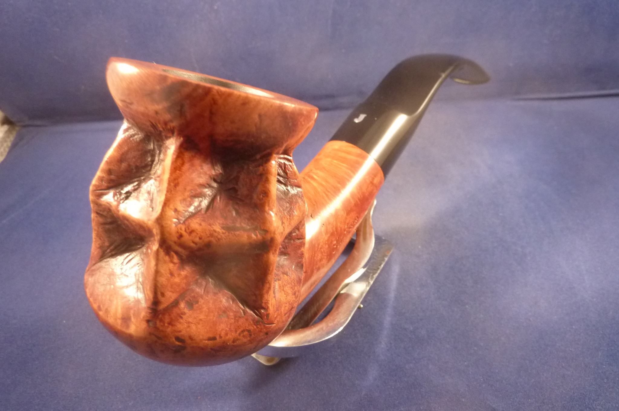 This is a brand new pipe made by Ser Jacopo in Italy. This company has some fine craftsmen, which produce beautiful handmade pipes with great designs and shapes. This giant briar pipe has a unique shape. Acrylic mouthpiece, without filter.