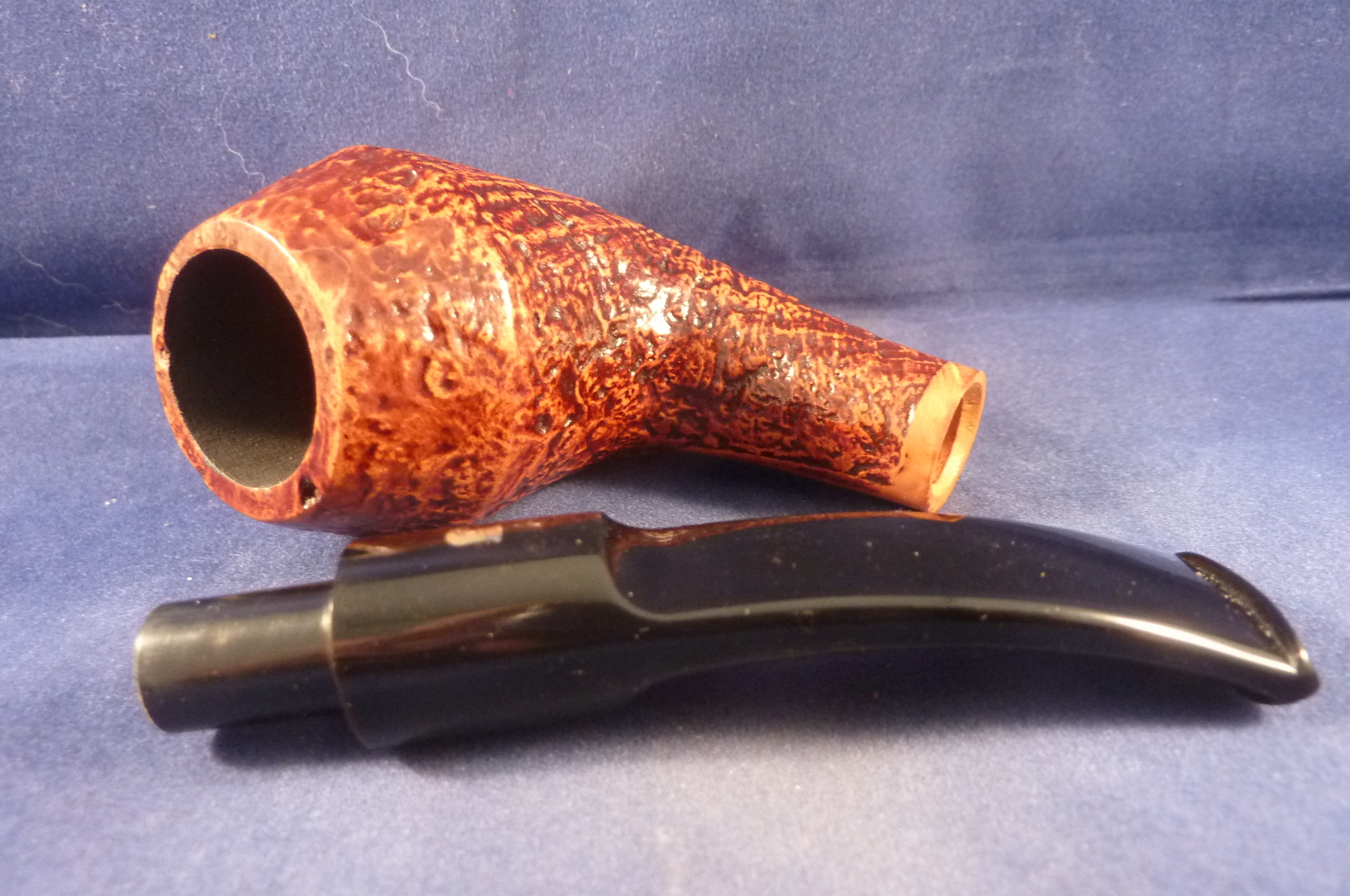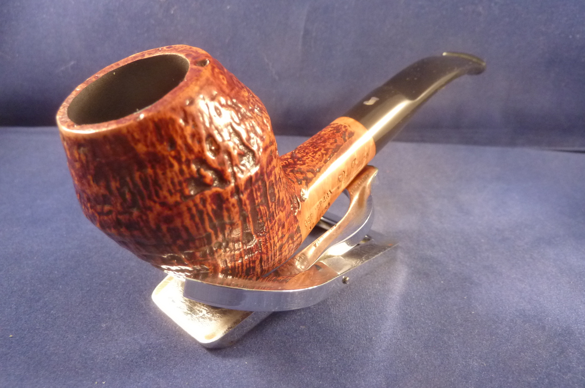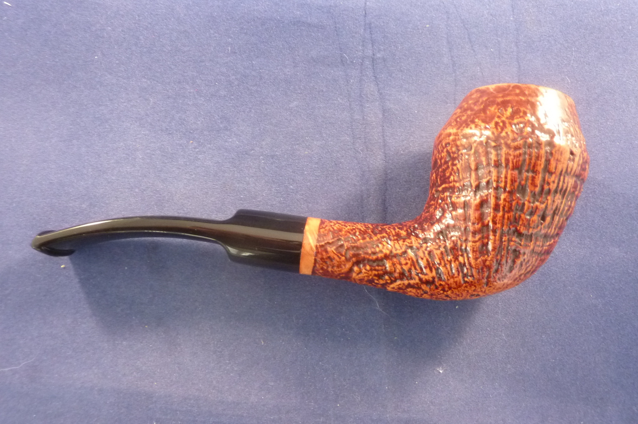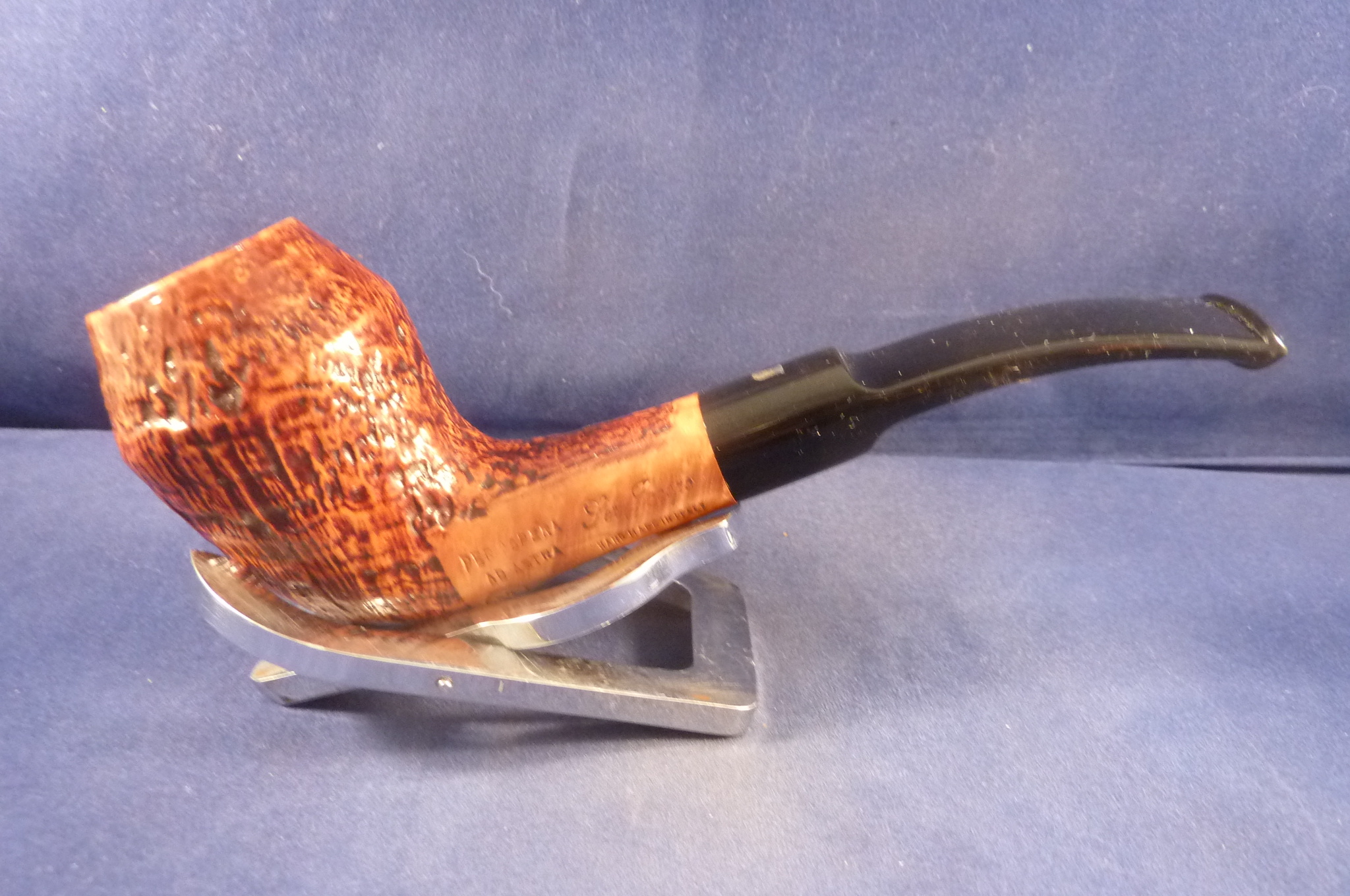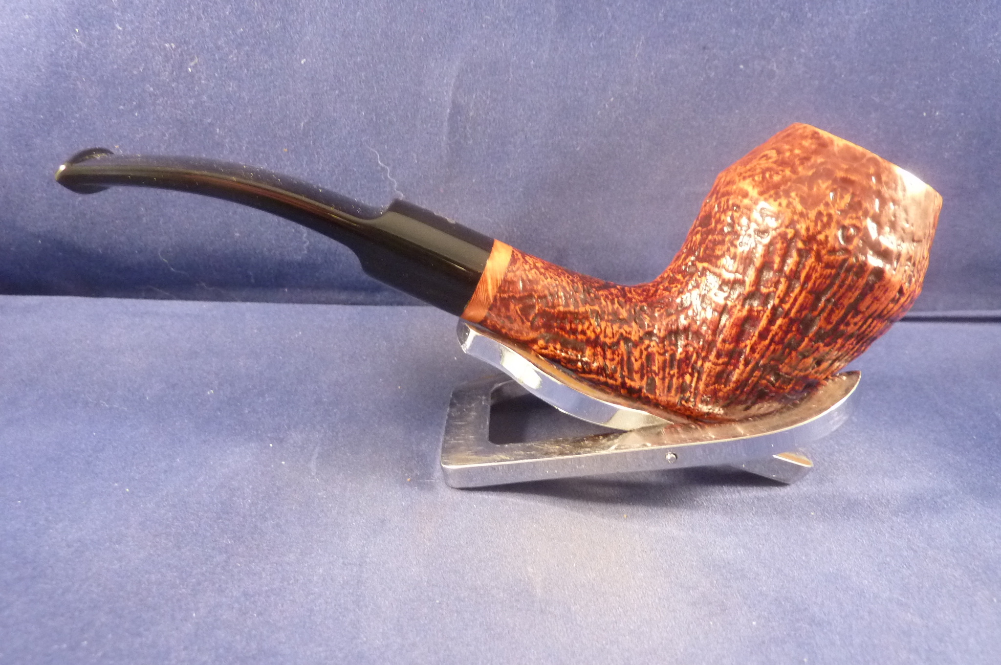 This is a brand new pipe made by Ser Jacopo in Italy. This company has some fine craftsmen, which produce beautiful handmade pipes with great designs and shapes. This sandblasted briar pipe has a beautiful shape. Acrylic mouthpiece, 9 mm. filter.