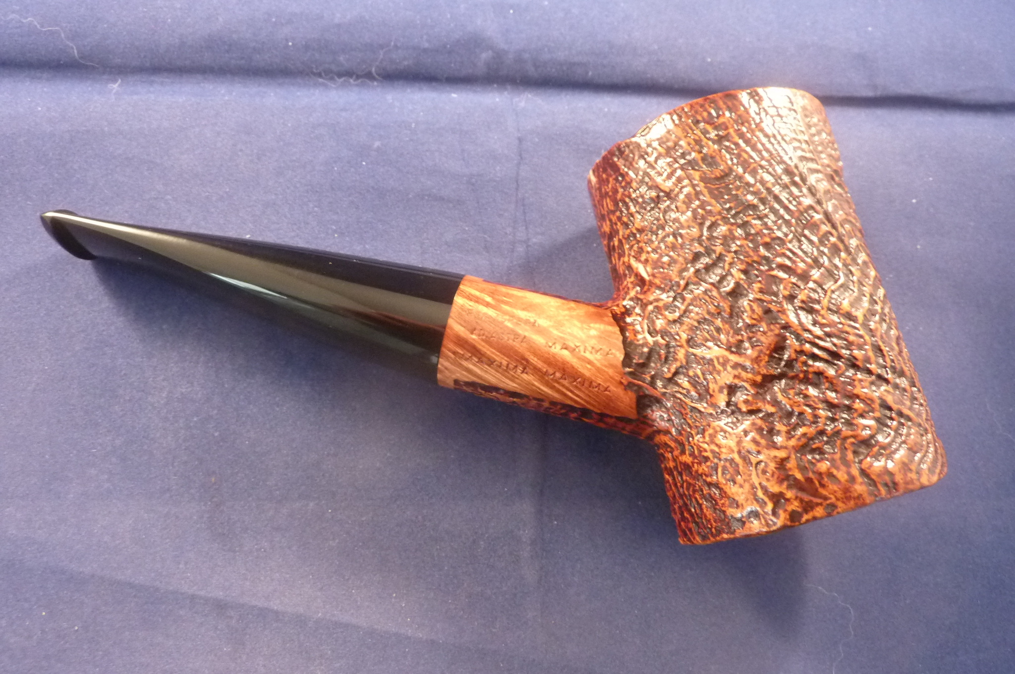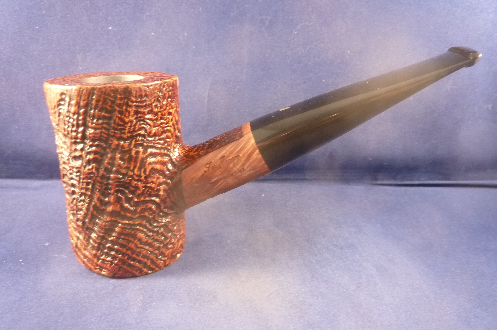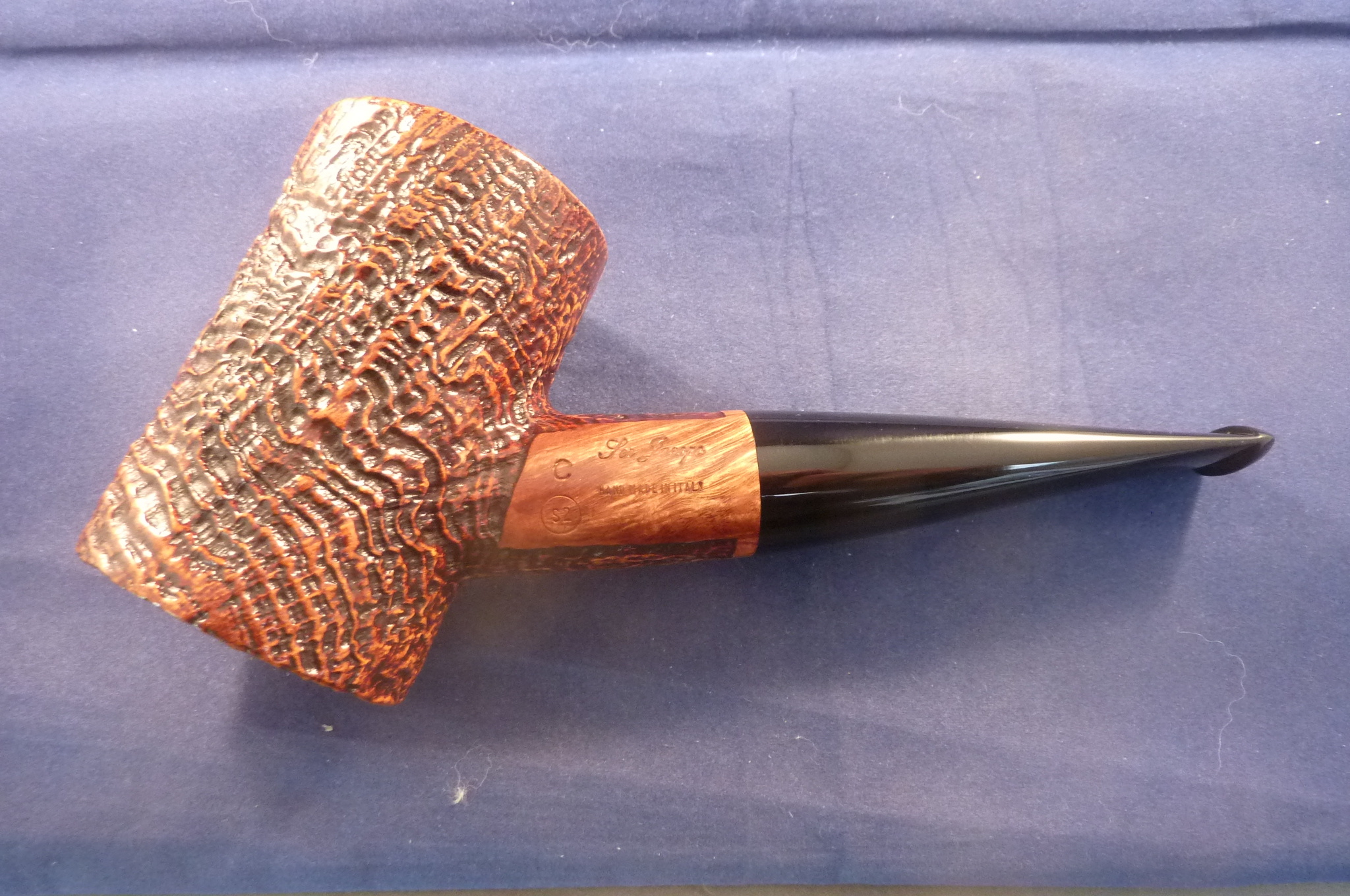 This is a brand new pipe made by Ser Jacopo in Italy. This company has some fine craftsmen, which produce beautiful handmade pipes with great designs and shapes. This sandblasted briar pipe has a giant poker shape. Acrylic mouthpiece, without filter.