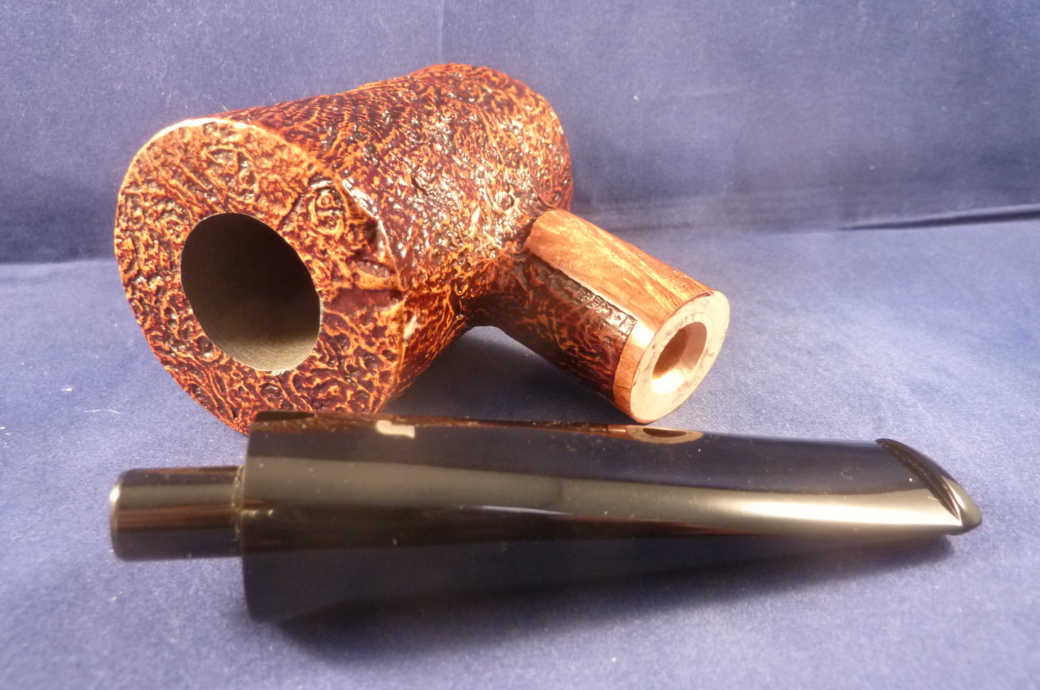 This is a brand new pipe made in Italy. This sandblasted briar pipe has an acrylic mouthpiece, without filter.