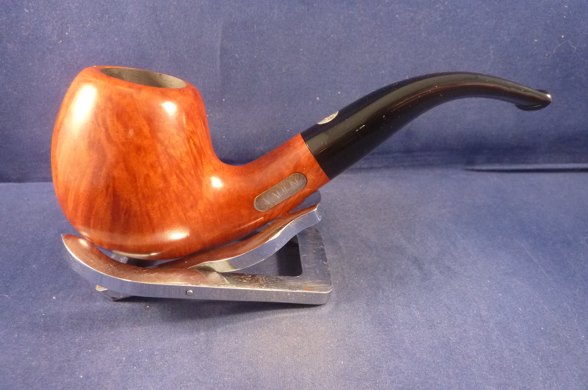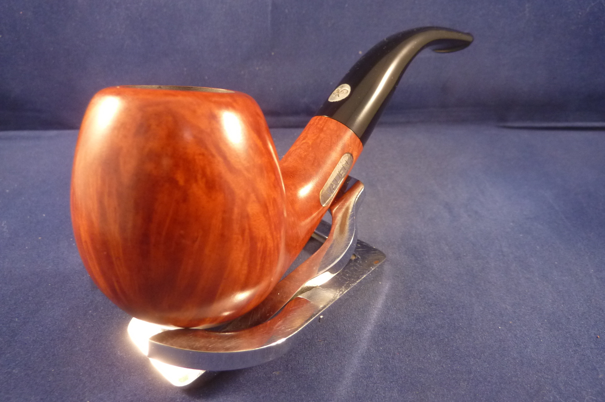 This is a brand new pipe made by L'Anatra in Italy. This Italian pipe has an elegant shape and a brown finish. Acrylic mouthpiece, with 9 mm. filter.