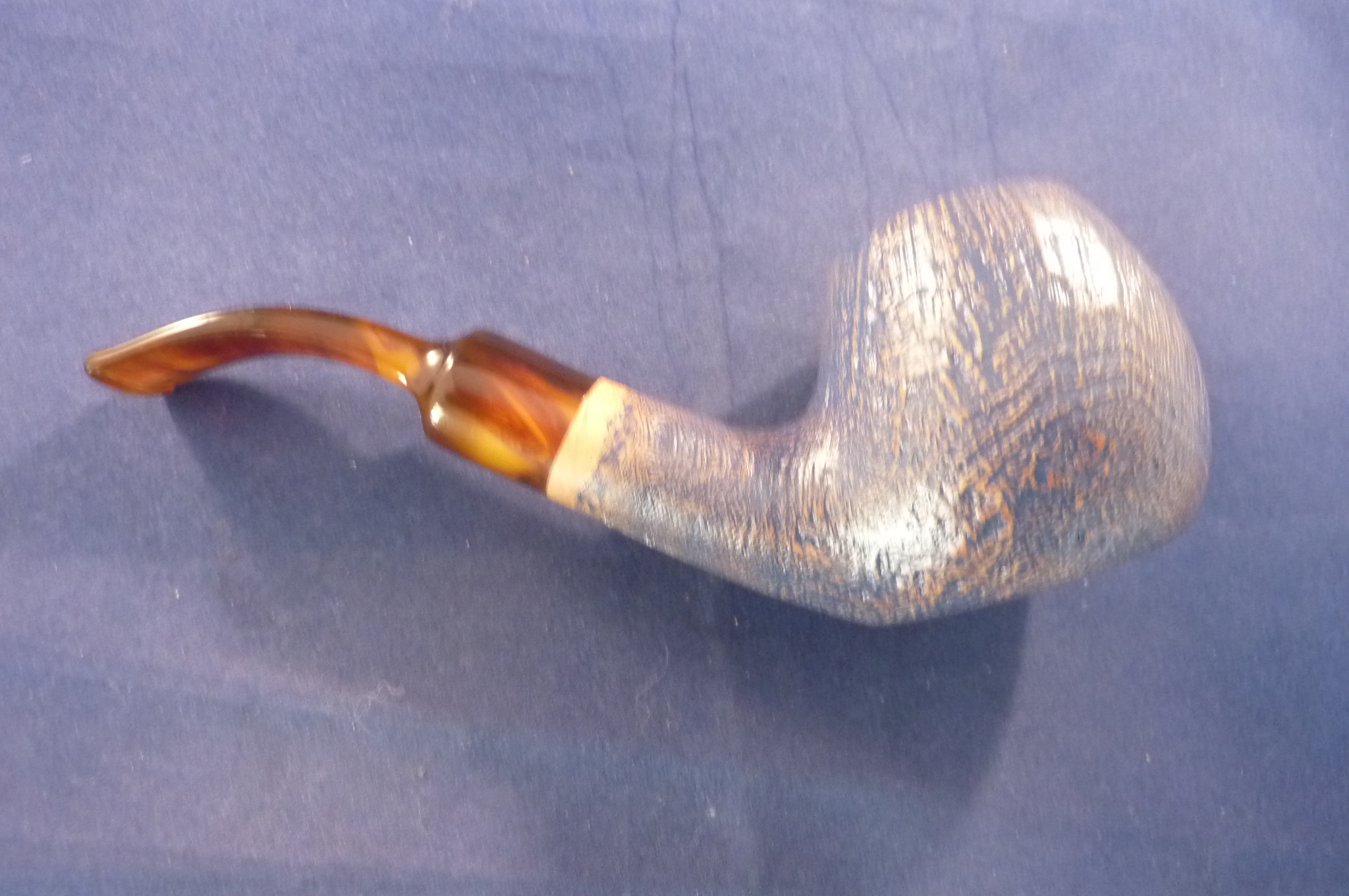 Sandblasted briar pipe in a blue finish made by Vauen in Germany. Acrylic mouthpiece, 9 mm. filter.