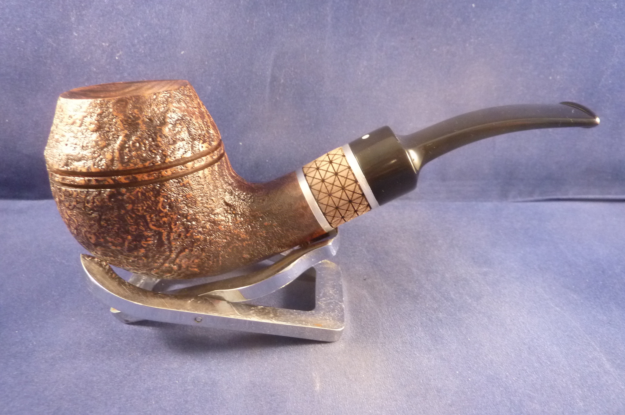 Rusticated briar pipe in a brown finish with a nickel mount,...