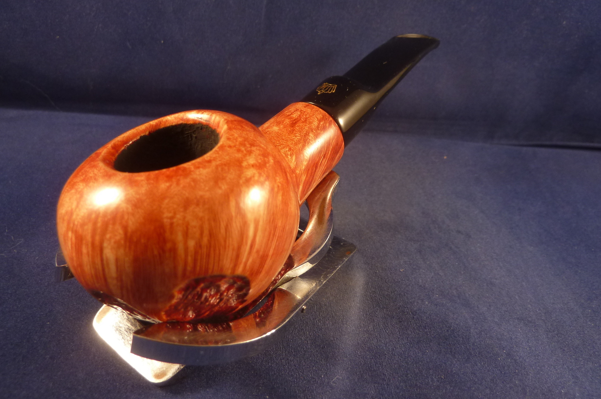 Beautiful briar pipe with a metal appliaction on the top of ...