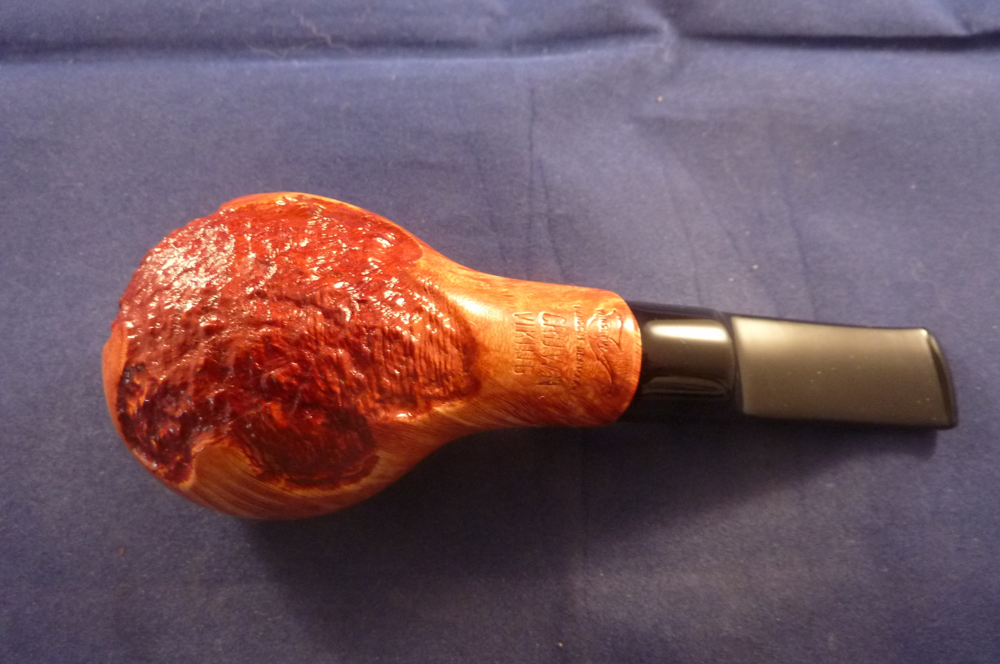 Sandblasted briar pipe in a natural finish made for Haddocks...