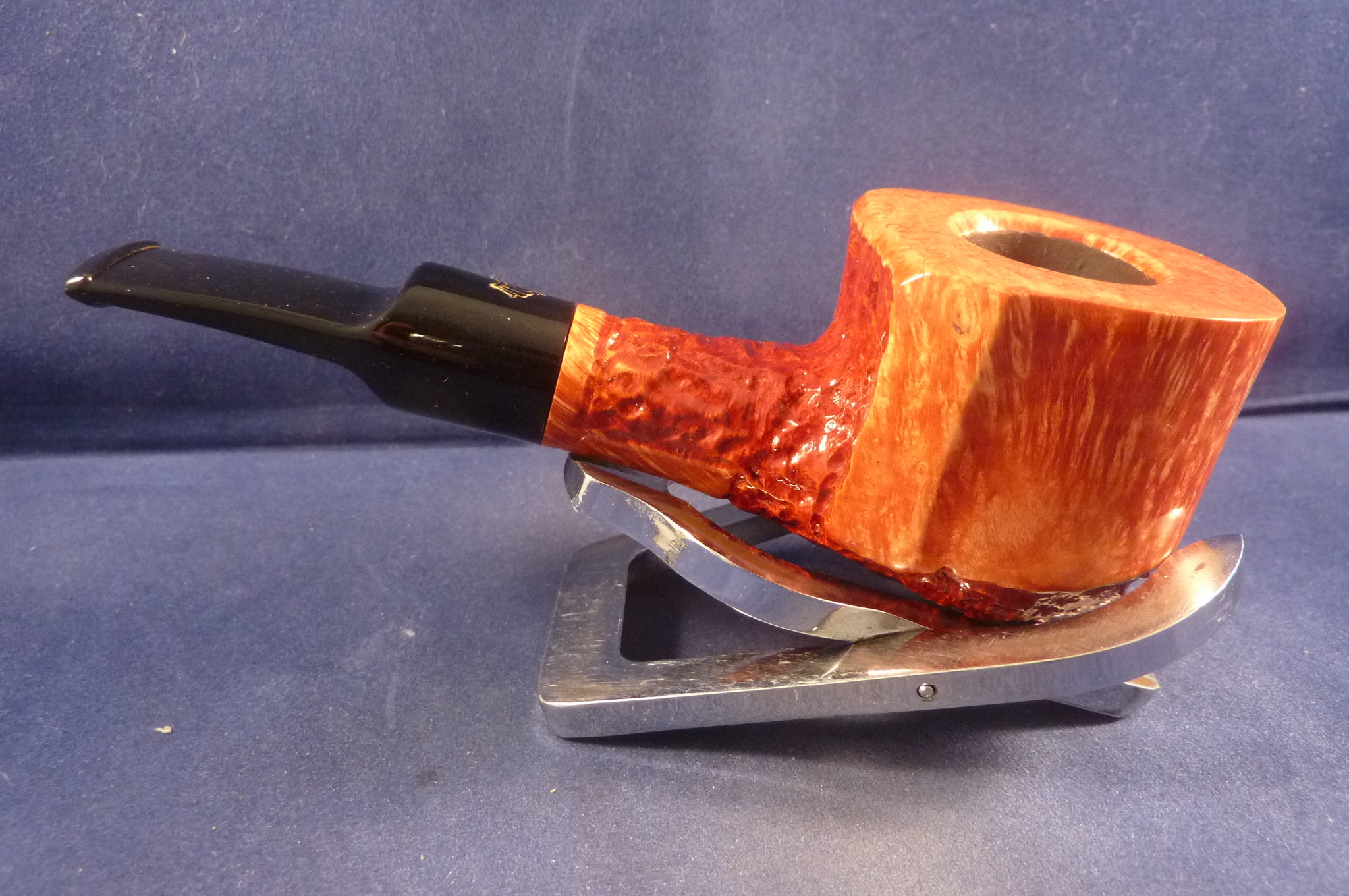 This is a brand new pipe made by Poul Winslow in Denmark. Made of Briar hand selected personally by Poul himself. Every pipe he makes is a real piece of art. The pipe is partly rusticated and partly smooth. Acrylic mouthpiece, 9 mm. filter.