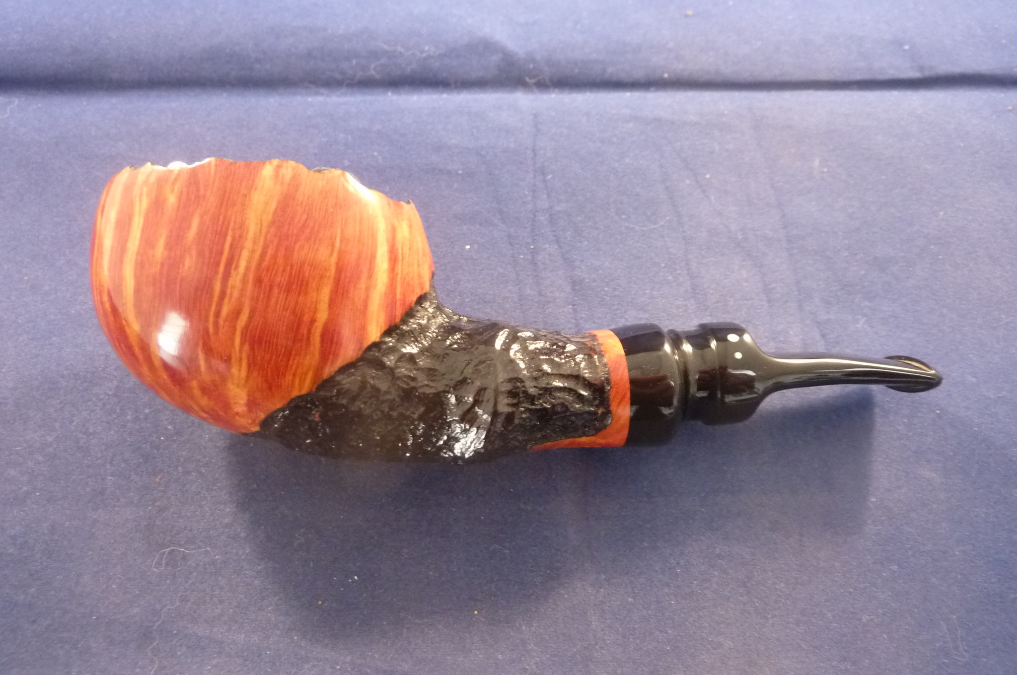 This smoking pipe is smooth with rusticated parts. This pipe has an acrylic mouthpiece. 9 mm. filter.